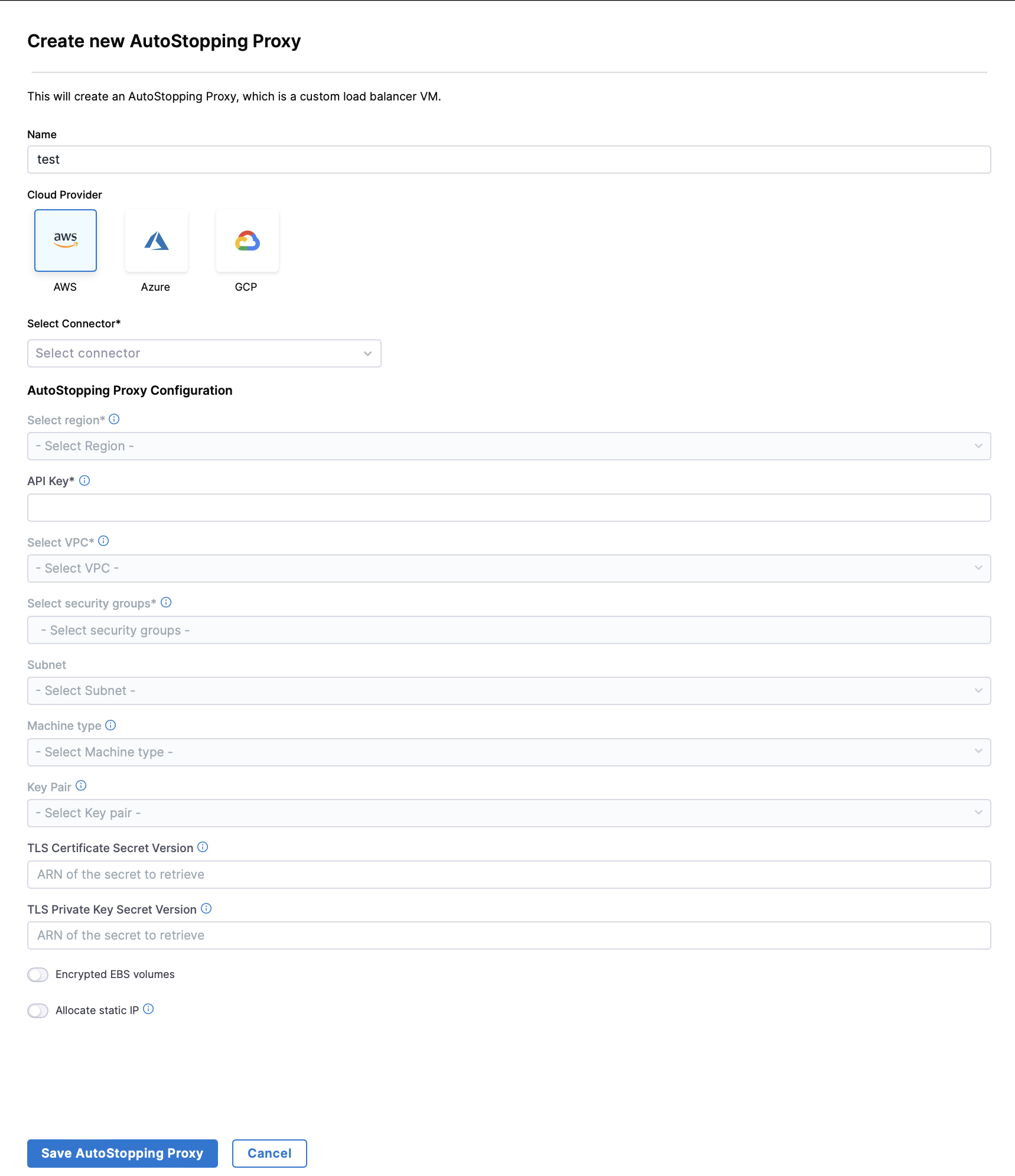3. Click Create New Load Balancer. Click Create New AutoStopping Proxy.