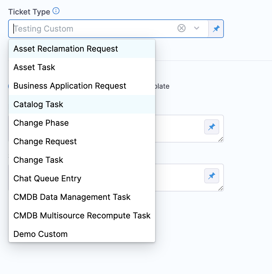 6. In Ticket Type, select a ServiceNow ticket type from the list.