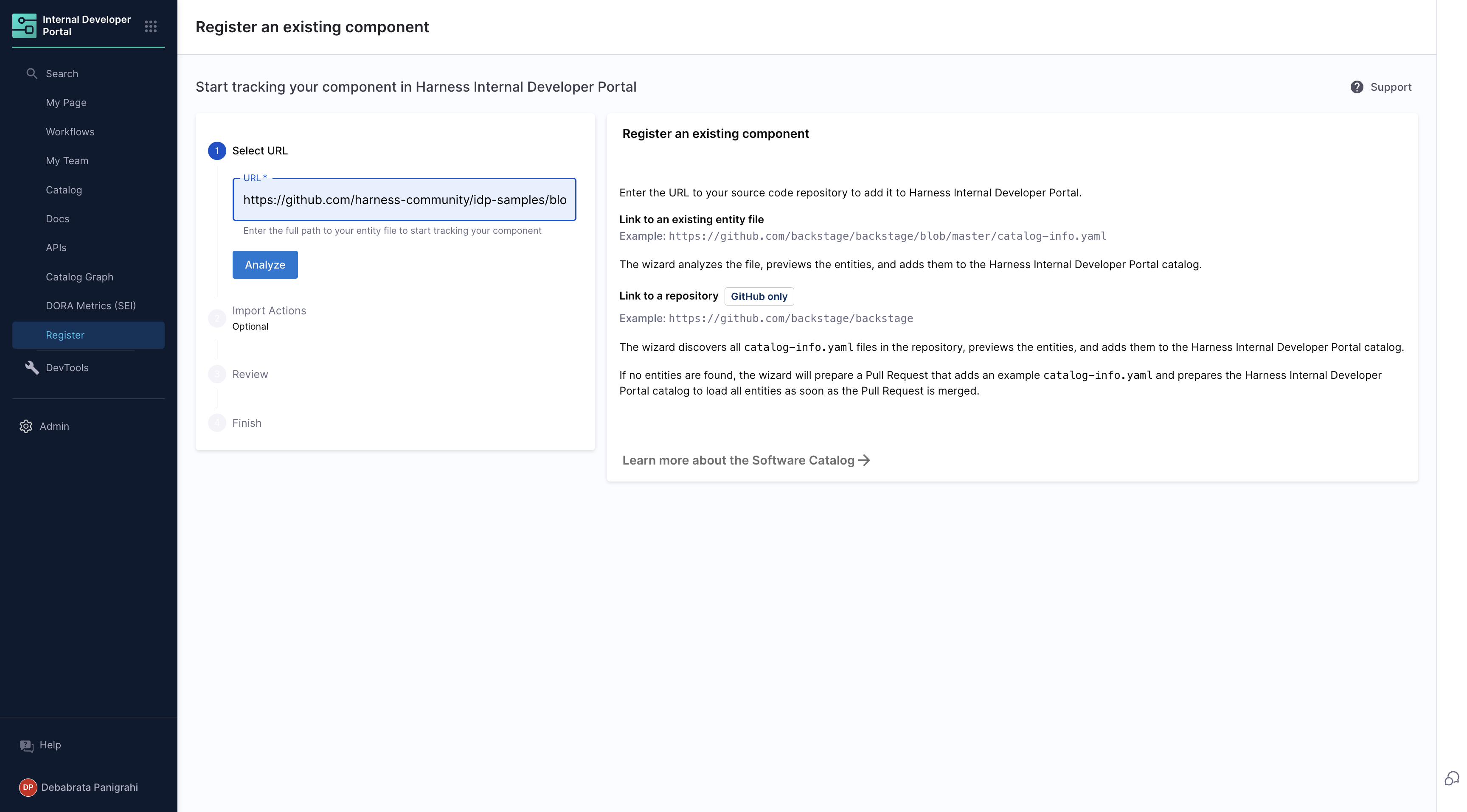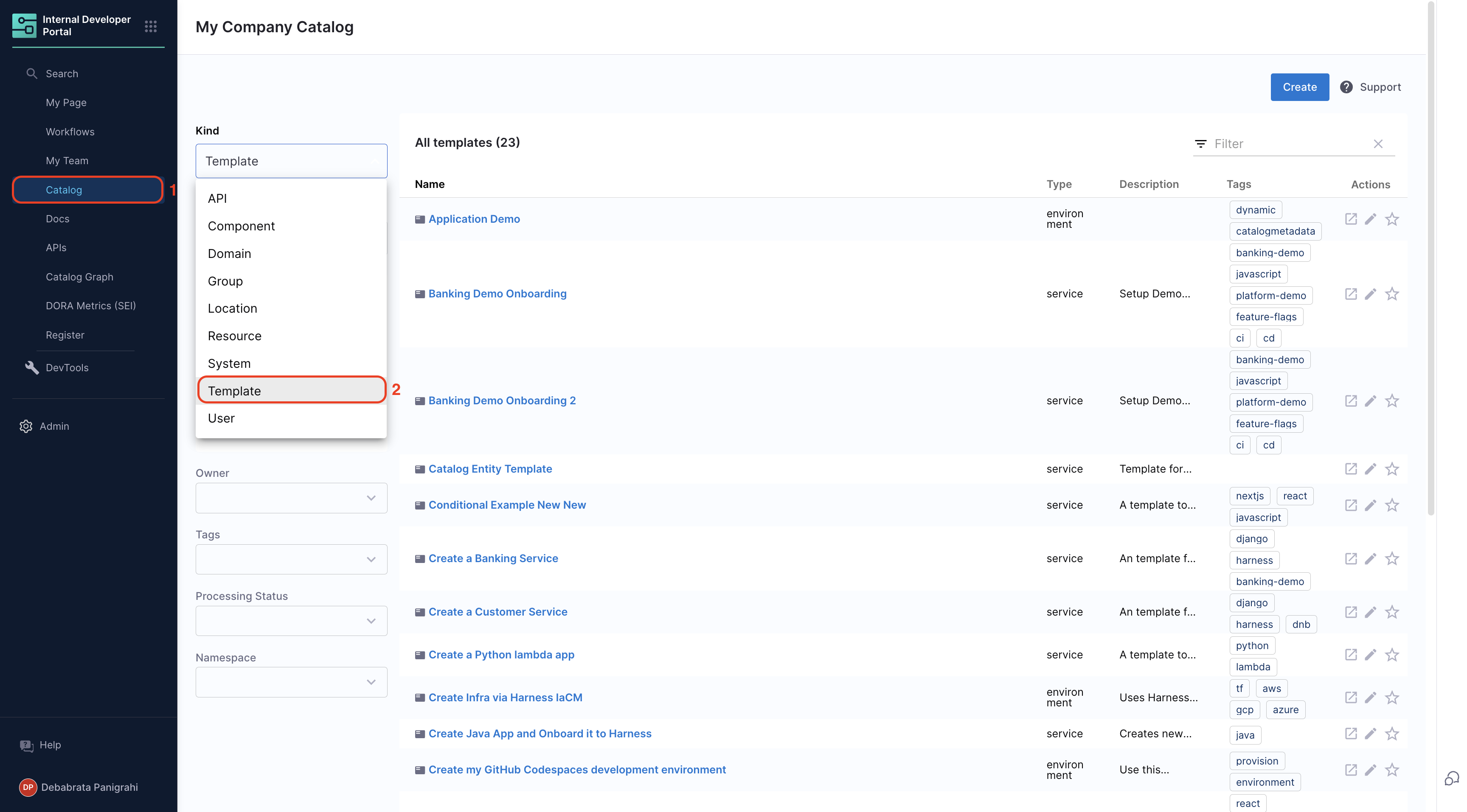 1. Navigate to the Catalog page in Harness IDP.