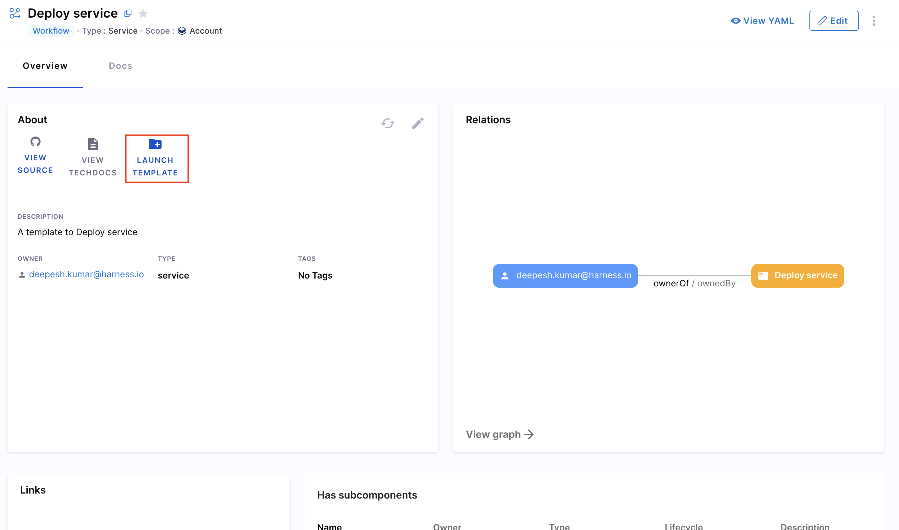 1. From the Catalog, select the desired Workflow and click View YAML.