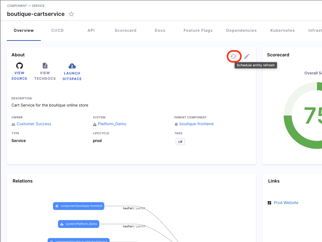 Plugins are often used to show additional metadata about a software component in the software catalog. For example, plugins show information about CI/CD pipelines, alerts, incidents, and project status. Read More