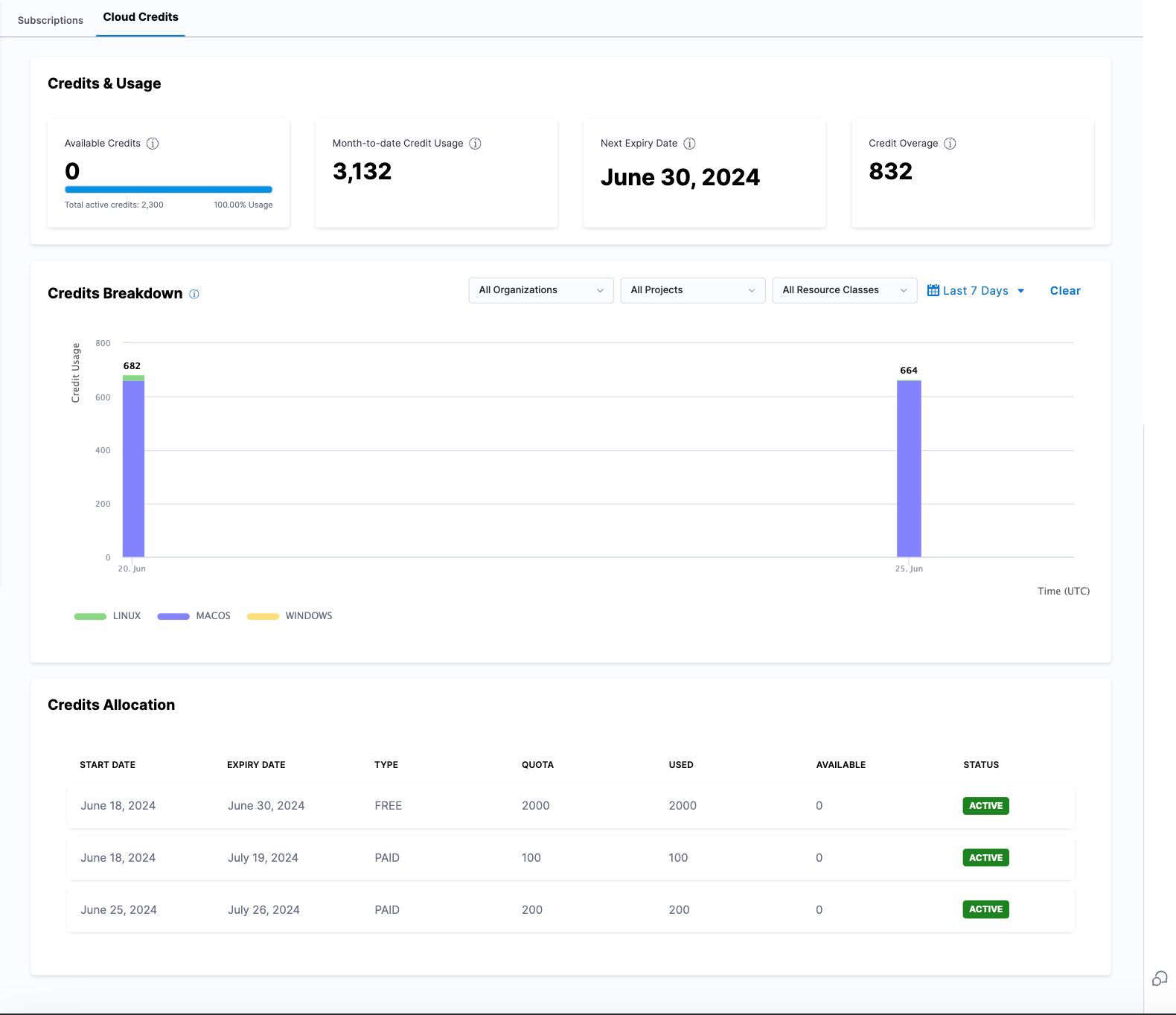 - Credit Overage: Current amount of credit overage. As a courtesy, Harness notifies you when you are running low on cloud credits. For more information, go to Credit allowance by plan tier and Credit overages (overuse).