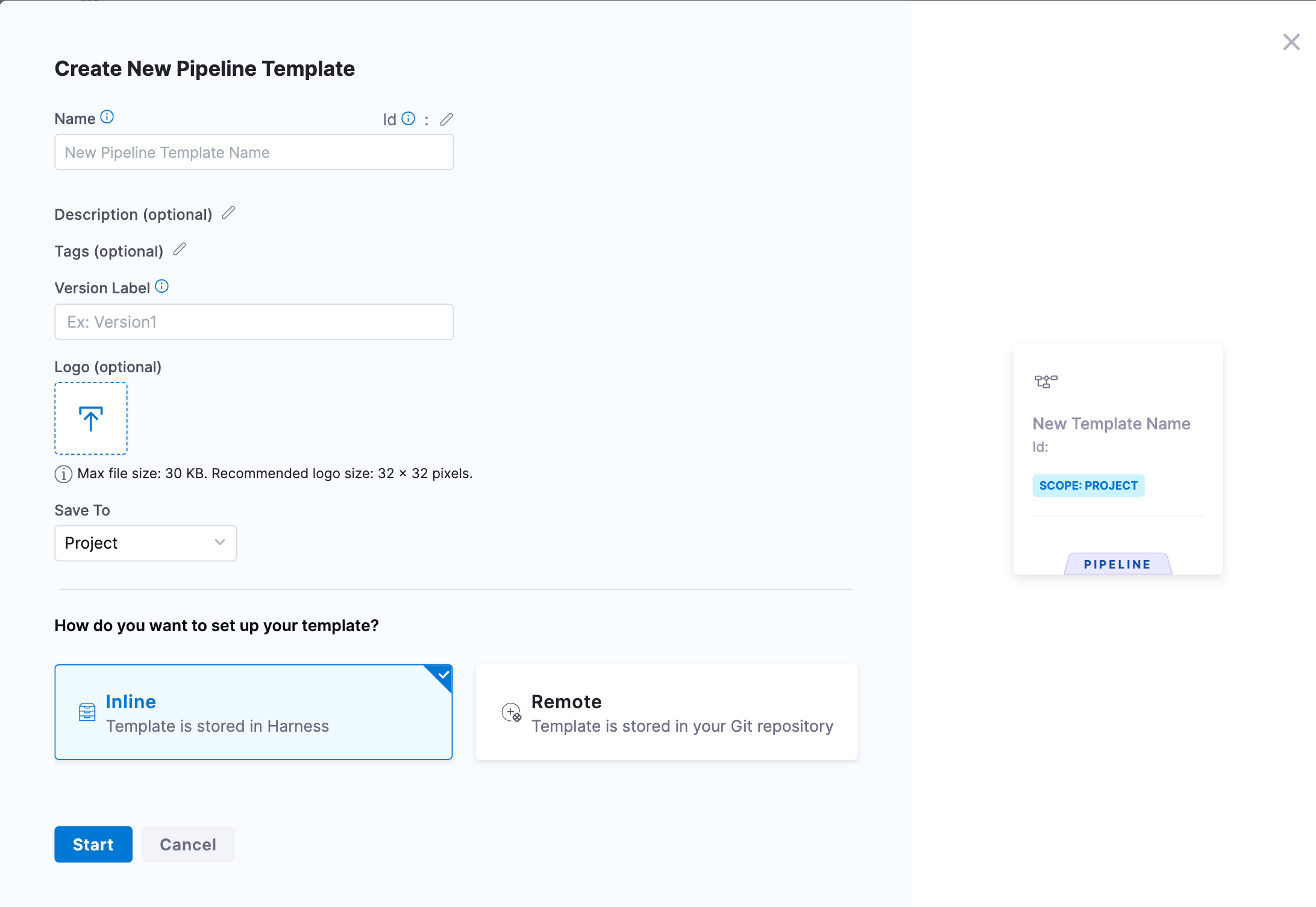If needed, you can also update the scope of the connector, moving it from project to org or account level, to access and save the template to a different repository.