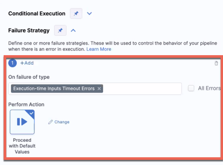 3. For On failure of type, select Execution-time Inputs Timeout Errors.