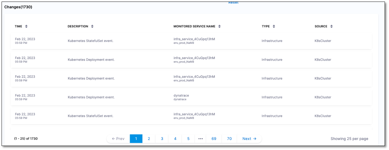 The Changes dashboard helps you understand when the change occurred, why it took place, and what impact it had on the health of the monitored service.