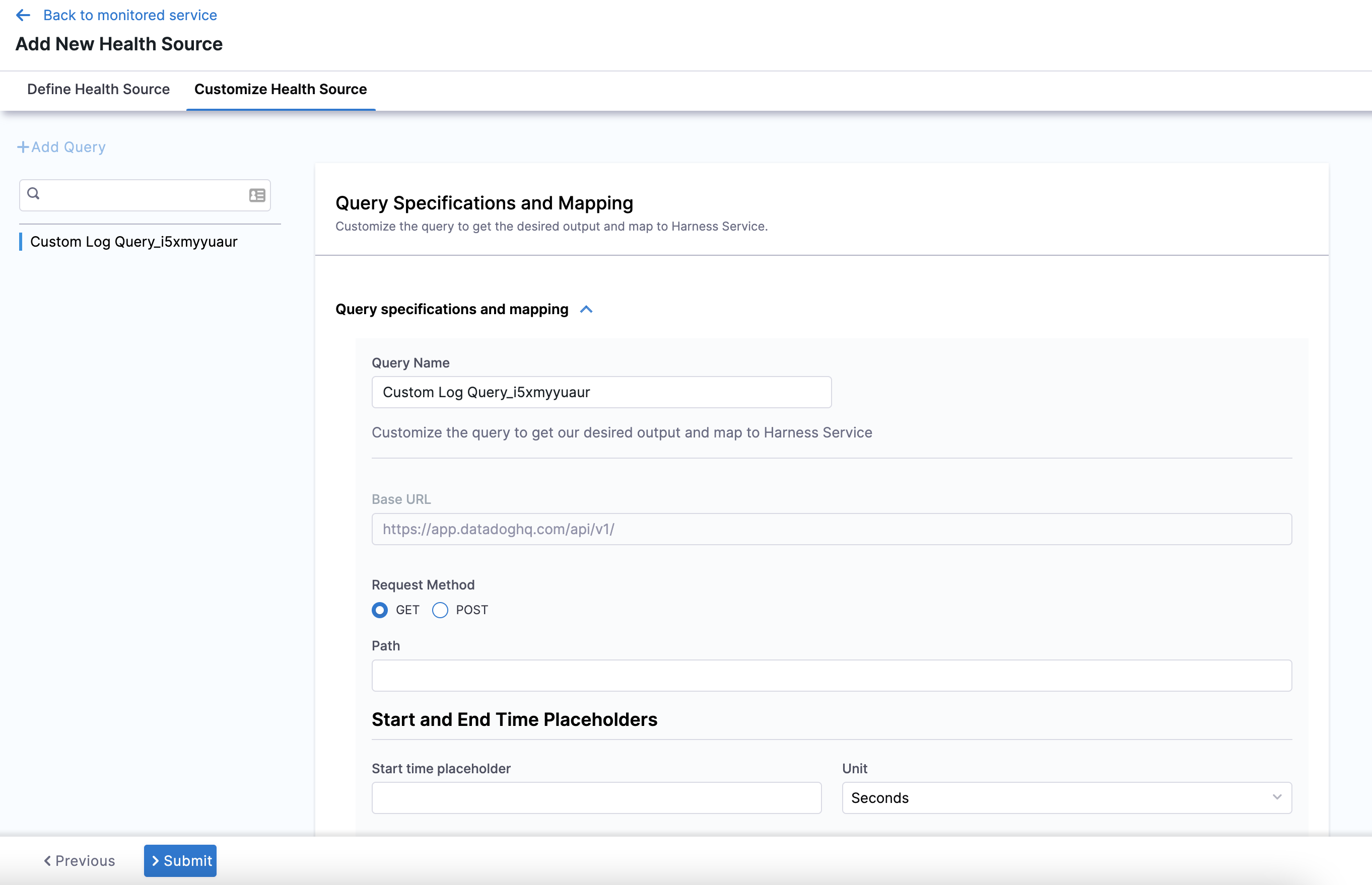 1. If you select Custom Health Logs, the Customize Health Source settings appear as: