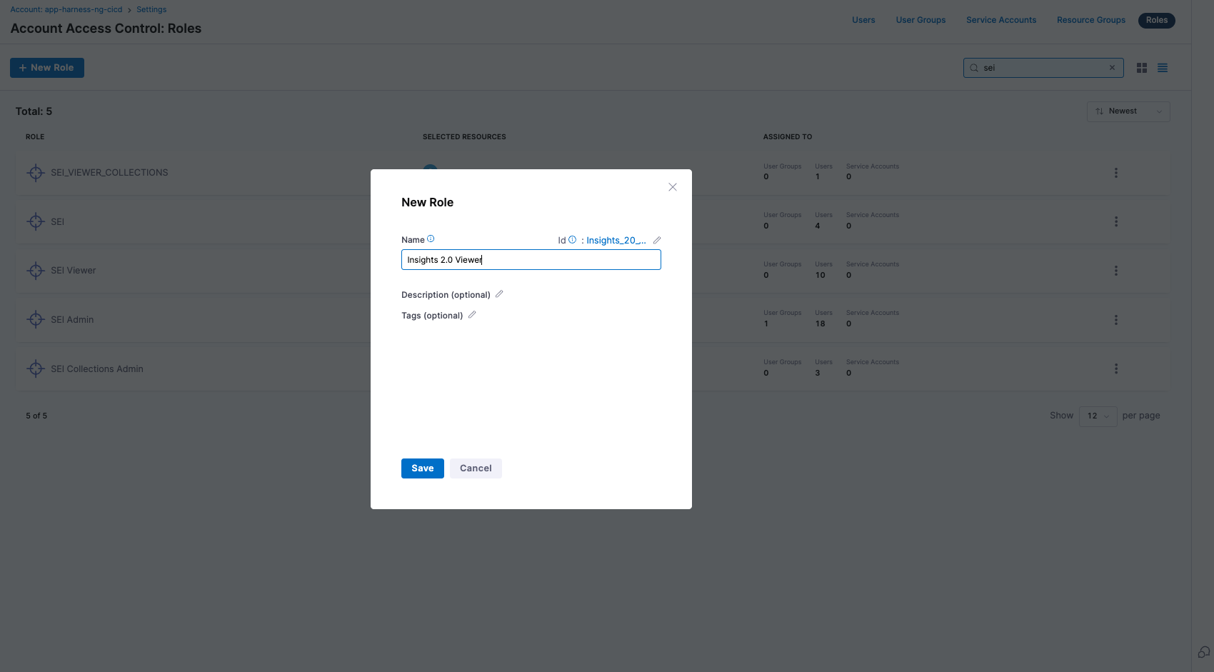 • Give your role a Name (e.g. SEI 2.0 Viewer). Description and Tags are optional.