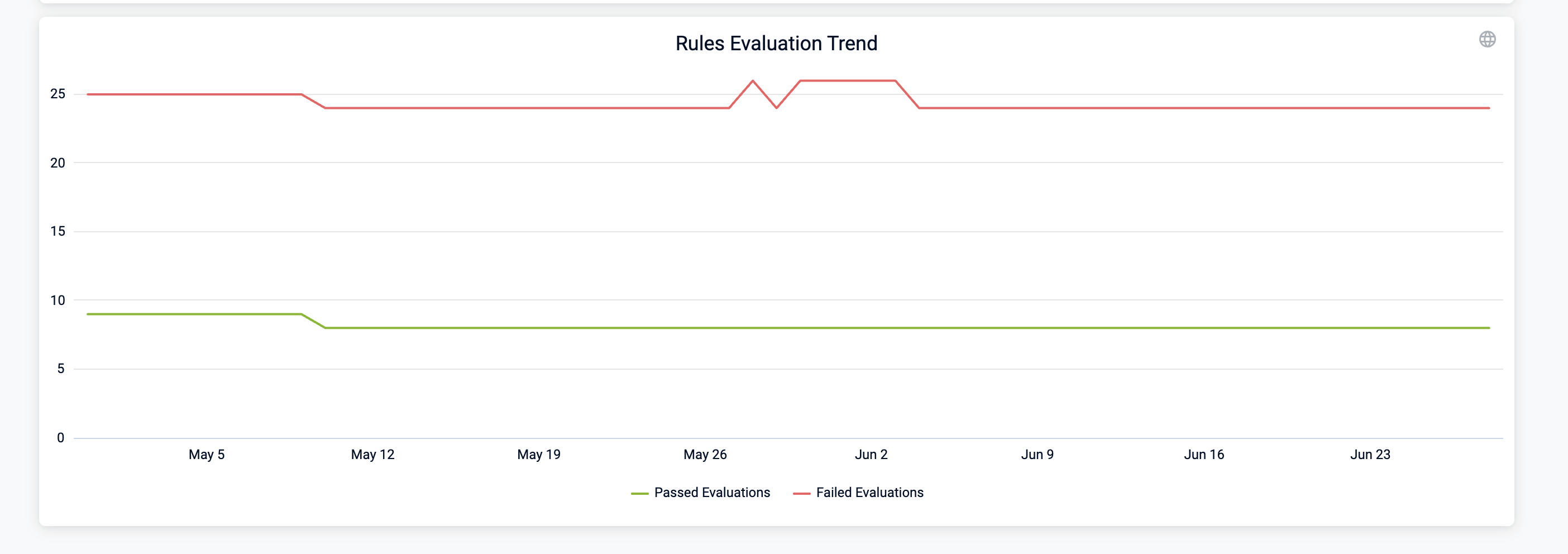 Tracks the total number of passed vs failed rule evaluations over time, helps you to visualize changes in compliance posture across scans.
